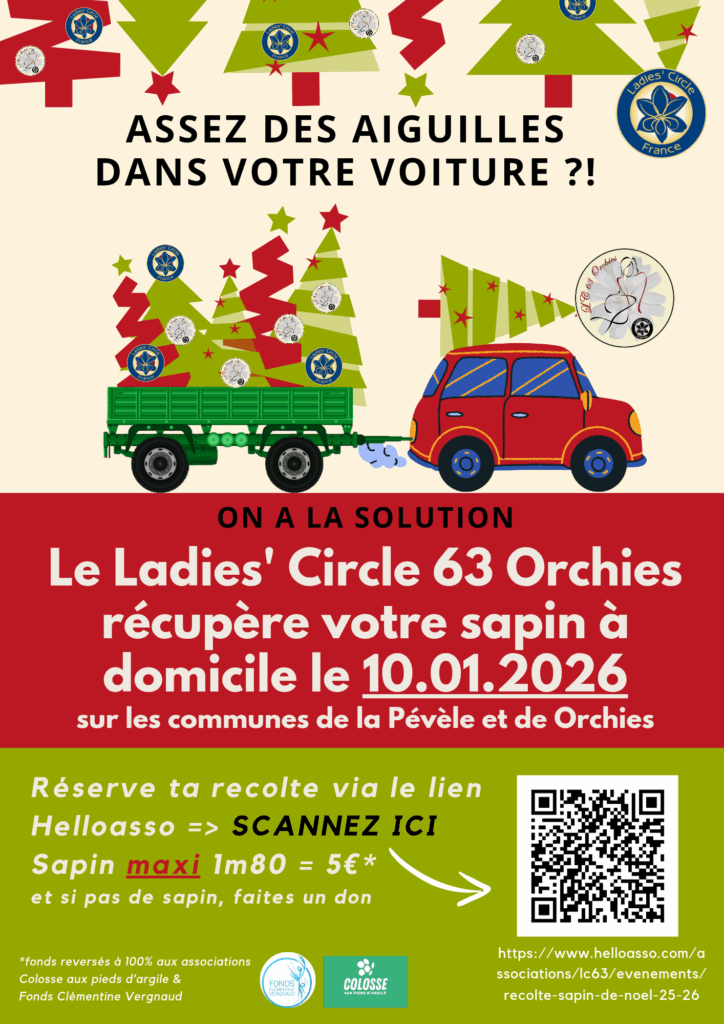 Et si 2026 commençait par une bonne action ? le Samedi 10 janvier les Ladies’ d’Orchies vous débarrassent de votre sapin pour seulement 5 € ! Déposez le devant votre porte la veille (avec l’étiquette accrochée), Ladies’s Circle s’occupe de tout !*
