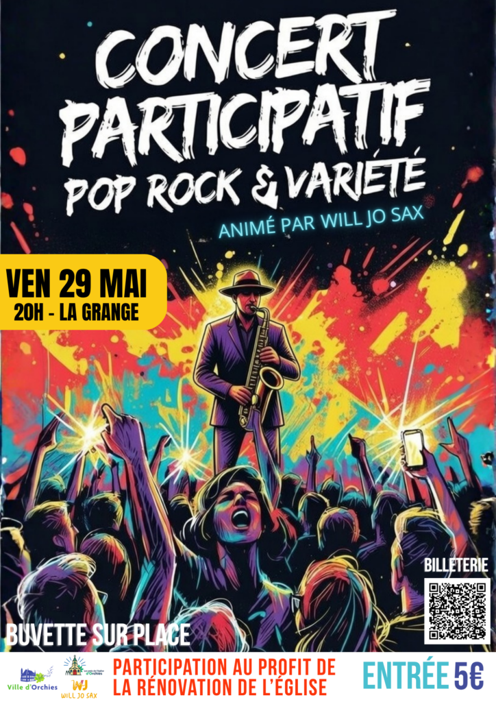 Concert participatif pop rock & variété animé par Will Jo Sax