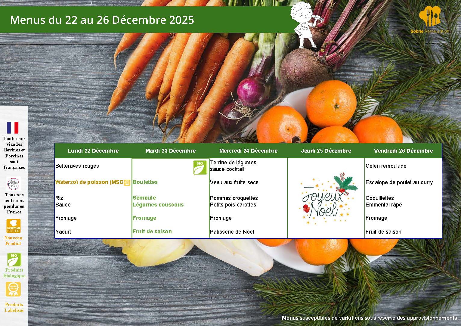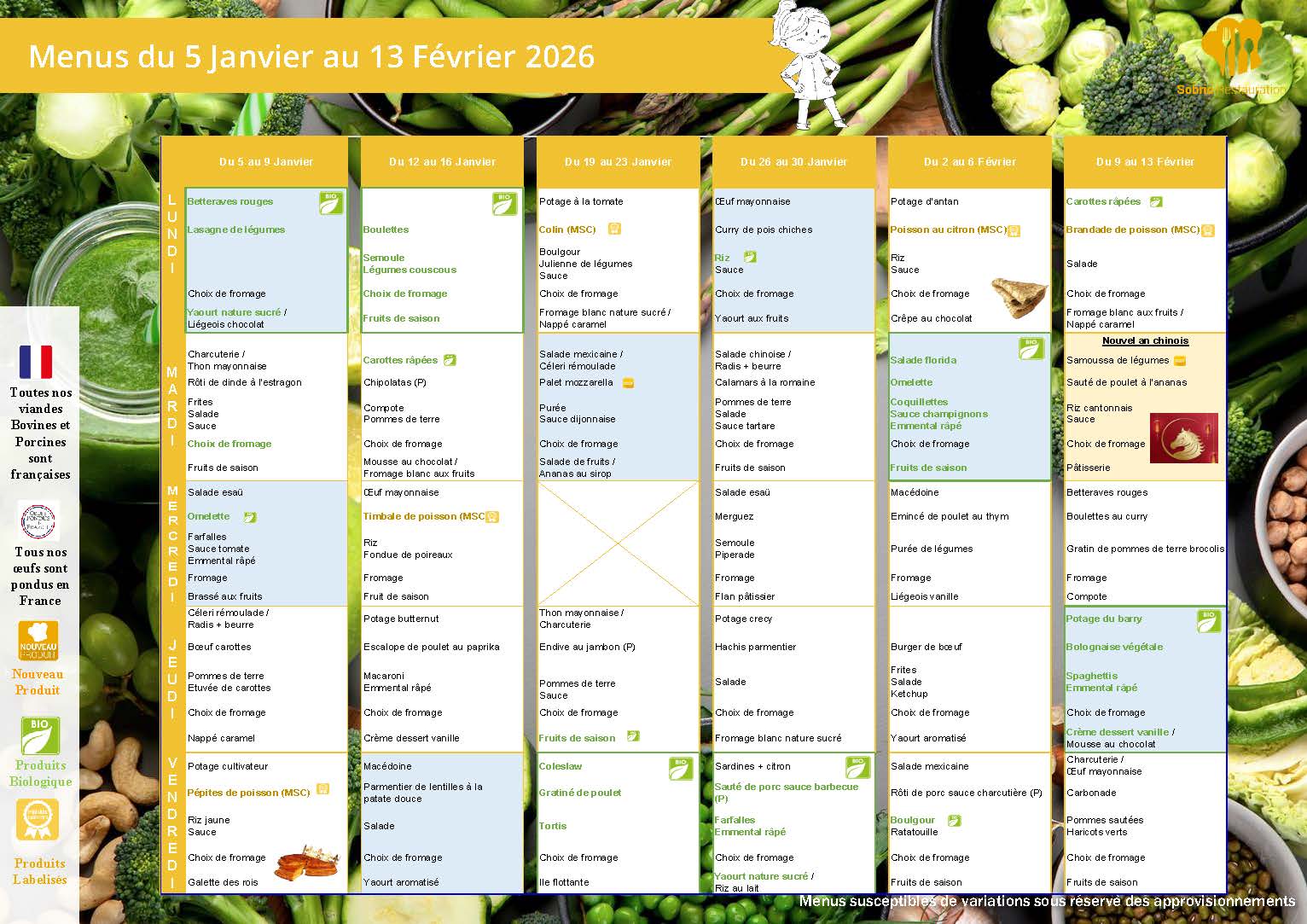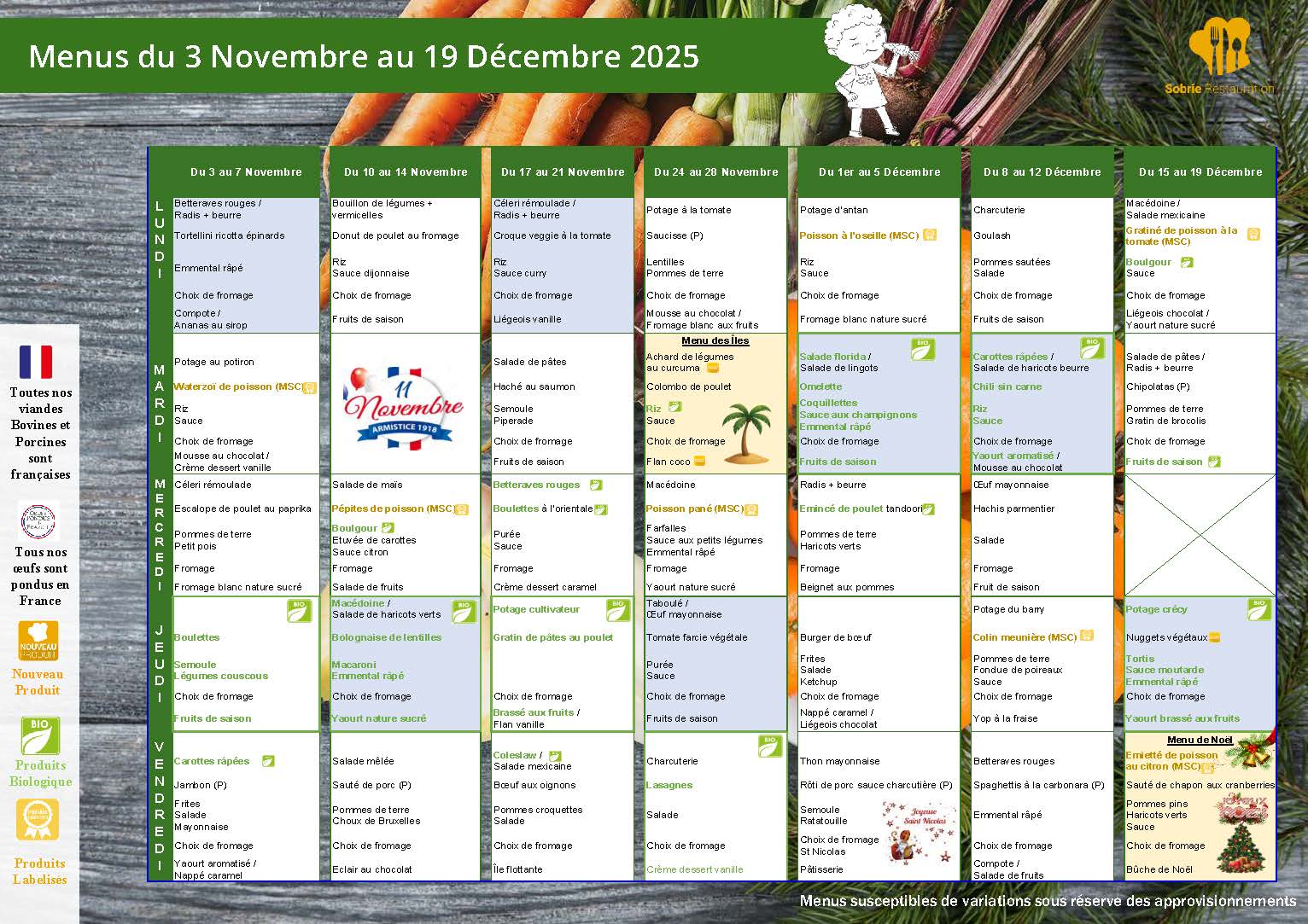 MENU DES CANTINES
