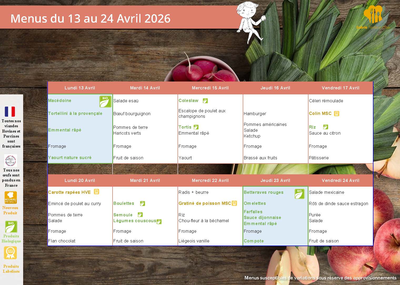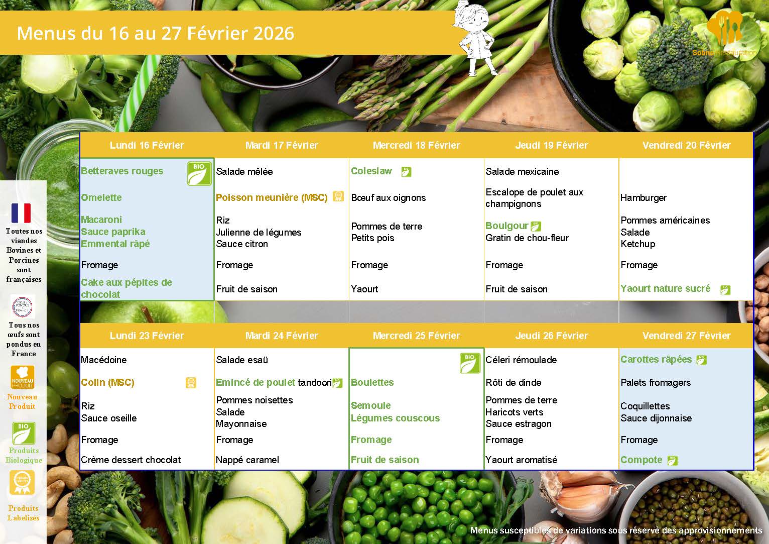 MENU DES CANTINES